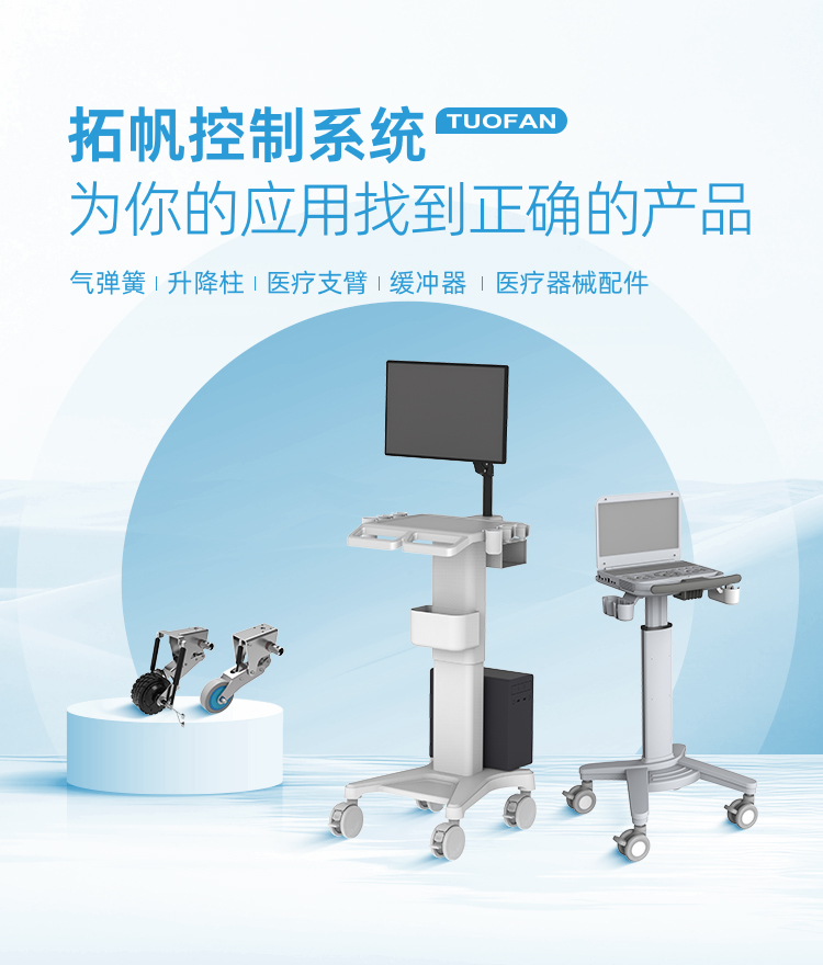 拓帆控制系統(昆山)有限公司是一家專注于醫療器械功能配件為主的專業化企業,總公司位于江蘇省蘇州市昆山市,成立于2011年。是一家集研發、制造、銷售及服務于一體的綜合性企業。公司成立來,以氣彈簧、阻尼器、抱鎖器、減震器為基礎,現已拓展到氣動立柱 、電動立柱等升降系統,顯示器支臂、萬向支臂等支臂系統,稱重系統、手搖絲桿、第五腳輪、護理骨科牽引架、護理床控制系統、護理機等護理配件系統,規模不斷擴大,質量持續提升,成為服務于康復、護理、養老行業配件服務商。可根據客戶特殊需求,提供定制化解決方案。